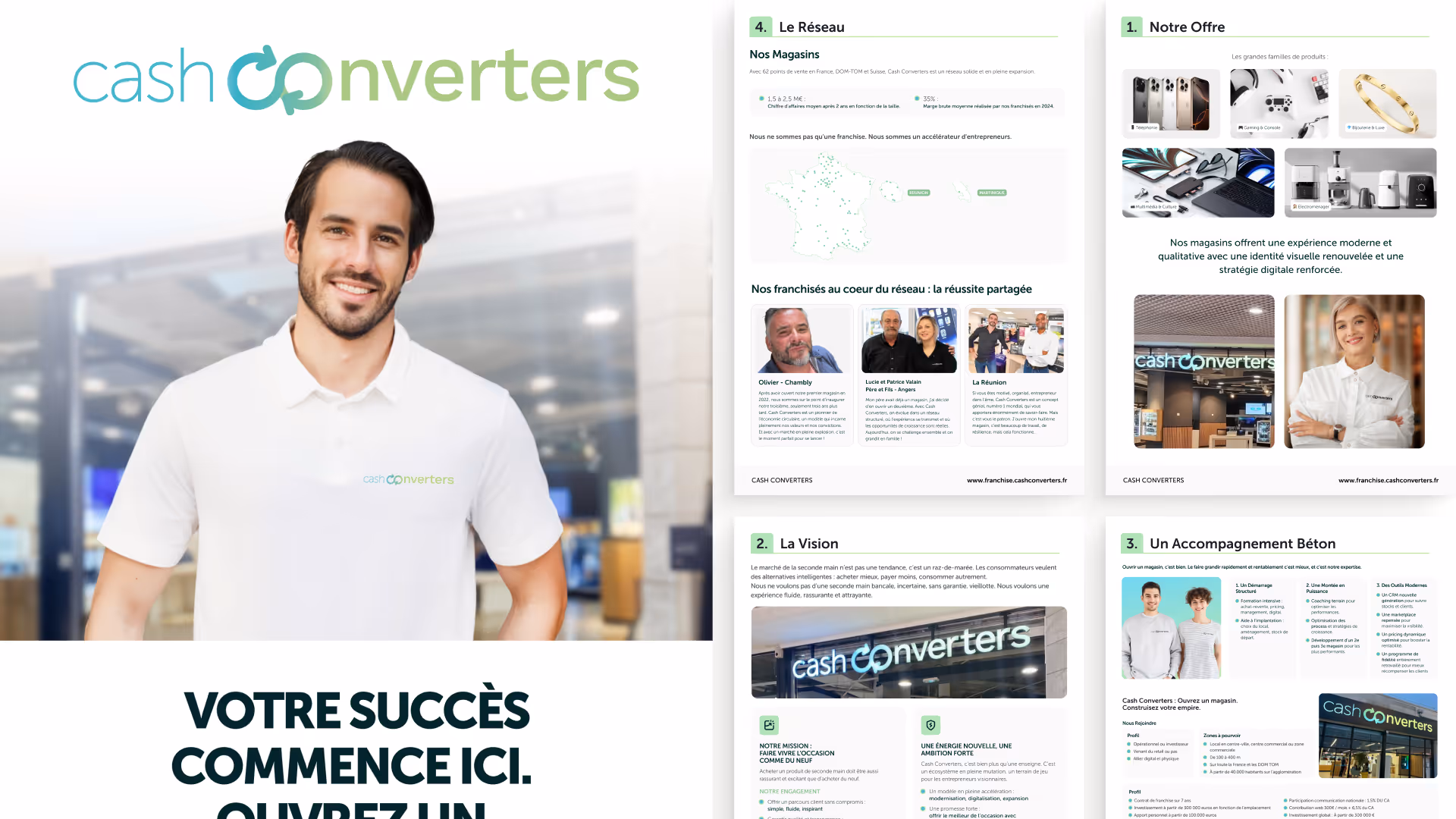 Le besoin était clair : une équipe fiable et rapide, capable de prendre en charge tout type de support — du flyer magasin au deck stratégique — tout en respectant à la lettre la direction artistique de l’enseigne. Cash Converters avait besoin d’un partenaire qui s’intègre à leur quotidien sans friction.