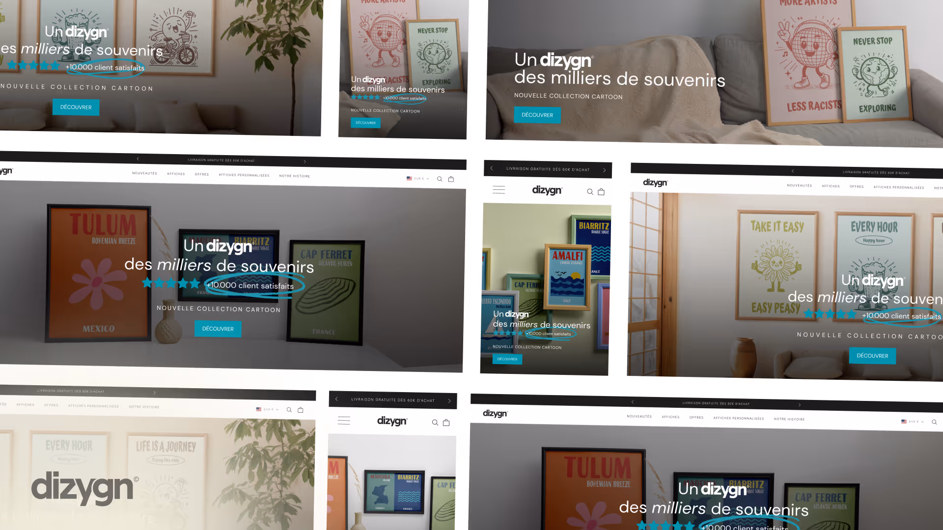 En s’appuyant sur Design Elite, Dizign a pu structurer et accélérer sa stratégie d’acquisition digitale. Grâce à des créatives publicitaires pertinentes et bien ciblées, la marque a considérablement baissé son coût par achat sur Facebook Ads. Les visuels conçus ont permis de mieux valoriser les affiches, de capter une audience plus engagée, et de générer un trafic plus qualifié sur la boutique Shopify.