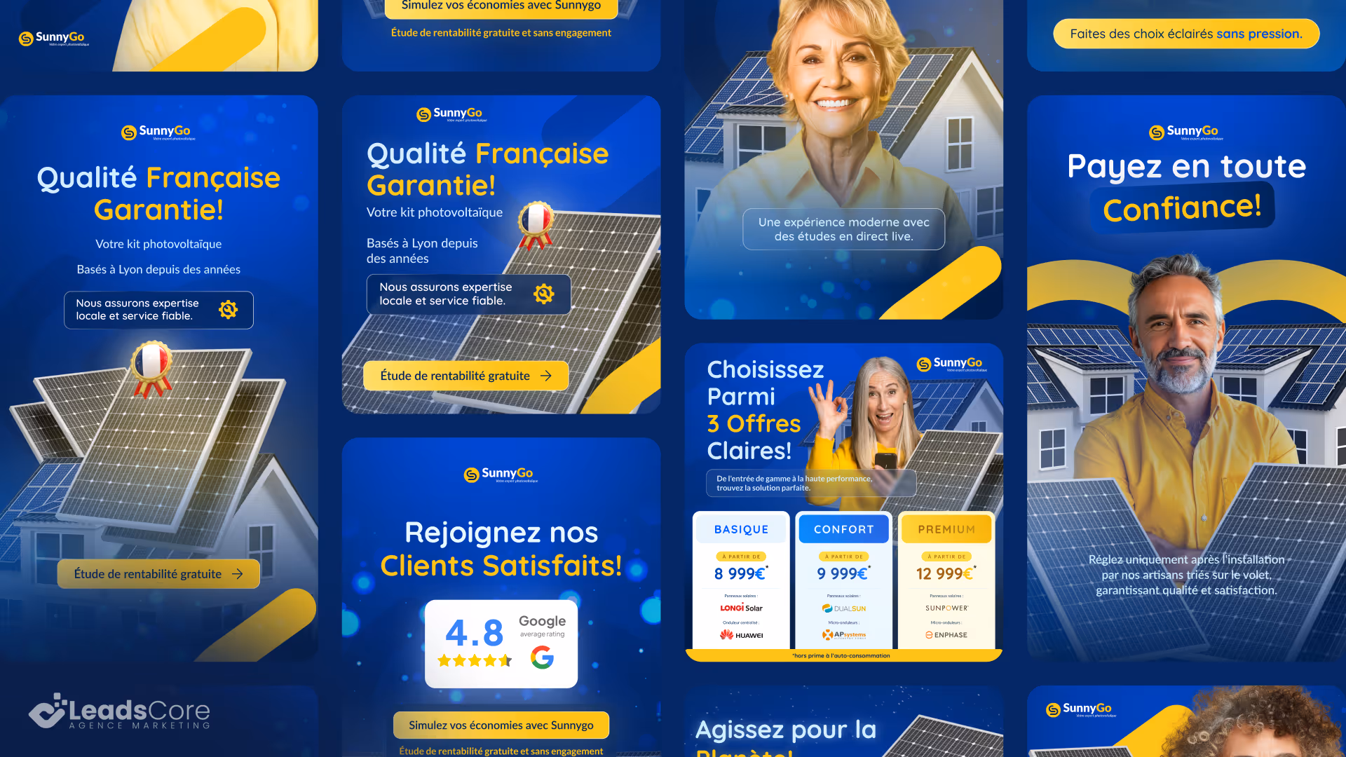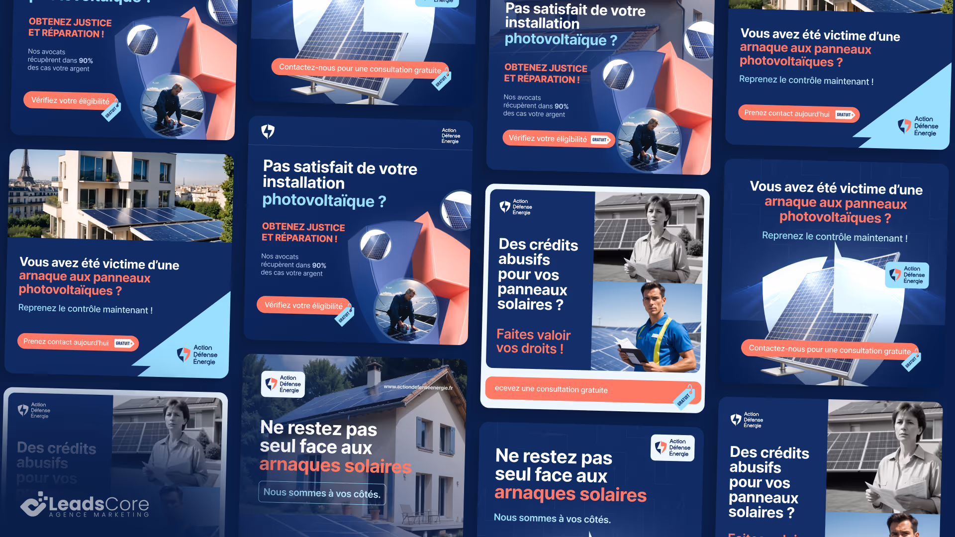 Pendant plus de 5 mois, nous avons collaboré avec les équipes de LeadScore pour produire en continu des créatives publicitaires sur mesure, destinées à alimenter leurs campagnes Meta Ads et Google Display. Chaque visuel a été pensé pour répondre aux besoins spécifiques de l’annonceur final, en s’adaptant à son ton, sa cible, et son univers visuel.