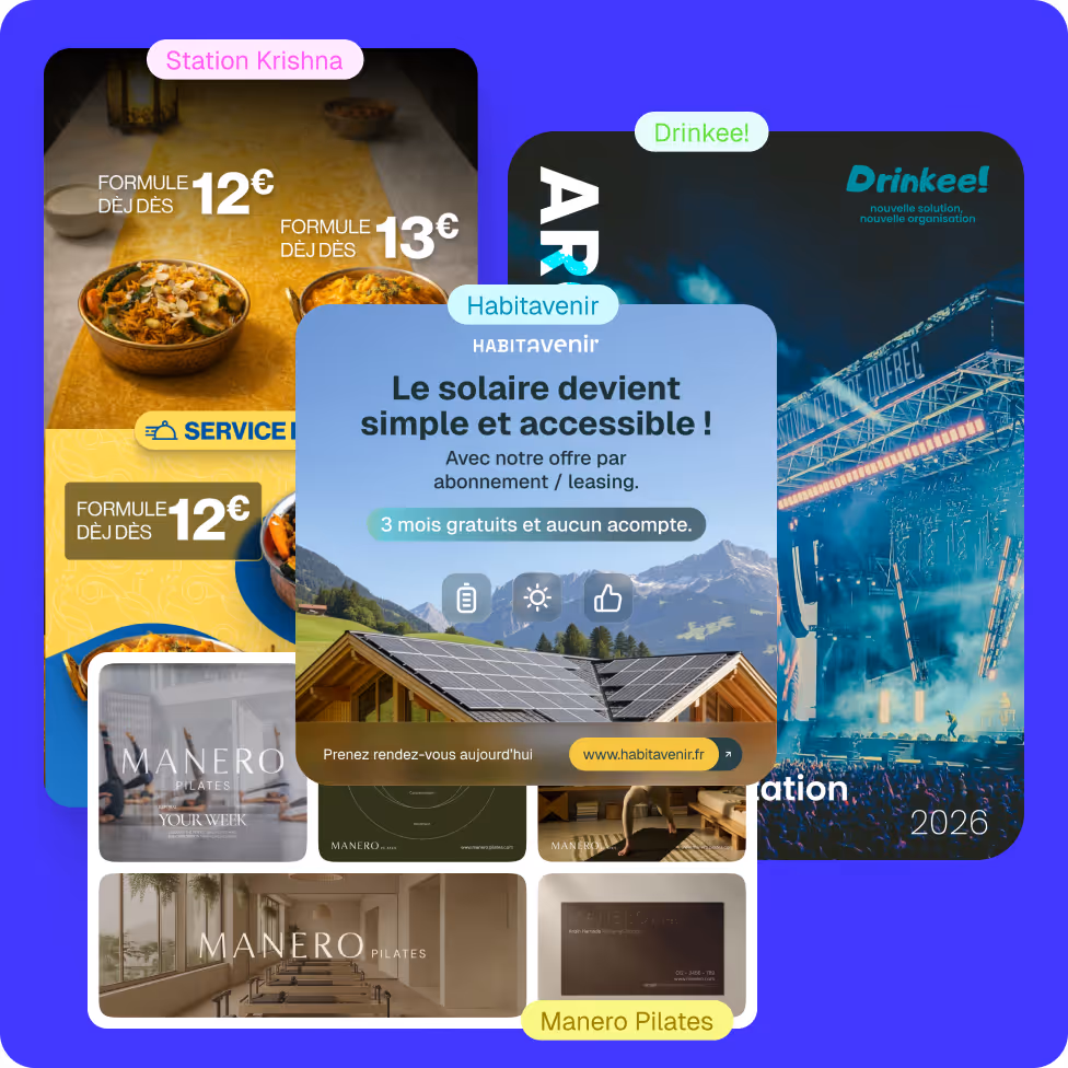Design Elite met à votre disposition une équipe de designers dédiés pour créer tous vos supports visuels : logo, plaquettes, réseaux sociaux, présentations. Un abonnement mensuel fixe, sans engagement, sans surprise.