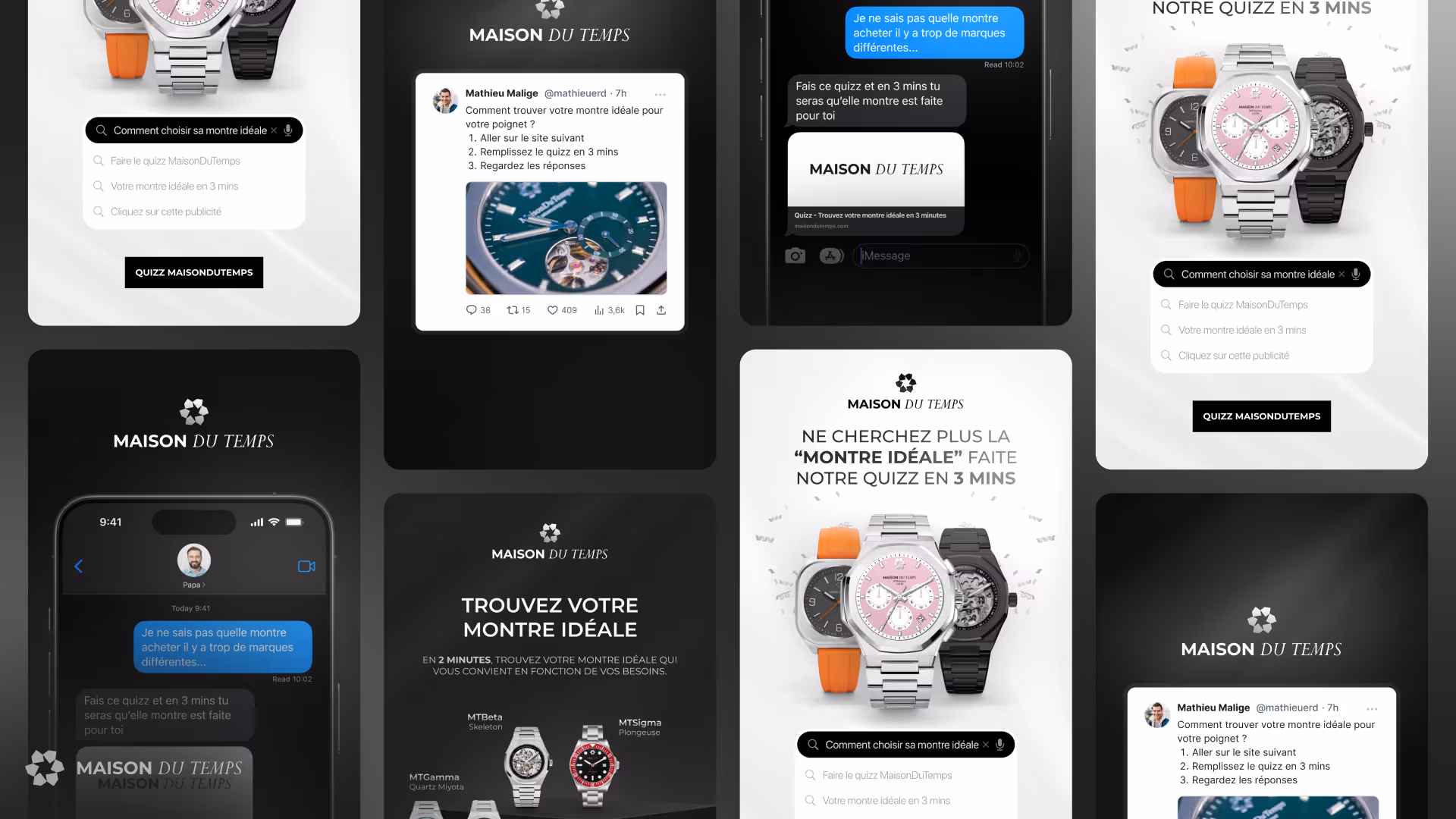 Le processus de travail a été structuré et fluide. MaisonDuTemps nous transmettait des briefs clairs et détaillés, incluant les formats, objectifs et messages pour chaque livrable. En 48 à 72 heures, chaque création était livrée, avec la possibilité de demander des révisions illimitées.