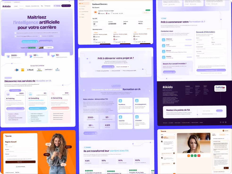 Design d'interface orienté engagement et complétion. Dashboards apprenants, parcours de formation, gamification.